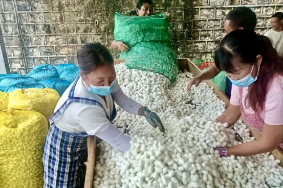 模式的成效在收購數(shù)據(jù)中得到直觀體現(xiàn)。此次大山基地首批收購數(shù)據(jù)顯示,總產繭量達4260.81公斤,實現(xiàn)總產值21.36萬元,平均單張產值2756.14元。亮眼的數(shù)據(jù)背后,是“28”模式為農戶開辟的多元增收渠道:土地流轉有租金,家門口務工有薪金,養(yǎng)蠶分成有股金。全村500畝流轉土地為農戶帶來了穩(wěn)定租金;基地已累計帶動100余名村民就近就業(yè),實現(xiàn)“掙錢顧家兩不誤”;而養(yǎng)蠶分成作為收入大頭,正成為鄉(xiāng)親們增收致富的核心動力。