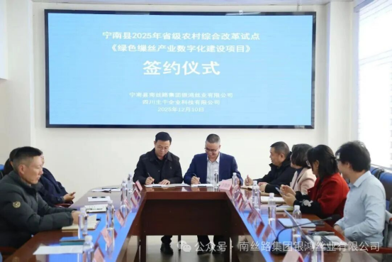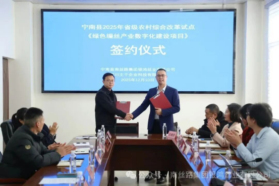 在全場見證下,銀鴻絲業(yè)與主干企服科技公司正式簽署戰(zhàn)略合作協(xié)議,全體參會(huì)人員以“F9數(shù)智絲業(yè)·南絲路綠色繅絲產(chǎn)業(yè)數(shù)字化建設(shè)項(xiàng)目啟動(dòng)儀式”的橫幅為背景定格瞬間,雙方負(fù)責(zé)人握手合影環(huán)節(jié)更彰顯企業(yè)協(xié)同、產(chǎn)學(xué)研融合的堅(jiān)定決心。隨著啟動(dòng)會(huì)的圓滿落幕,銀鴻絲業(yè)正以數(shù)字化為筆,在鄉(xiāng)村振興的畫卷上書寫綠色發(fā)展的新篇章。