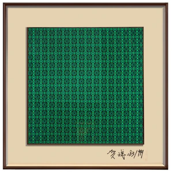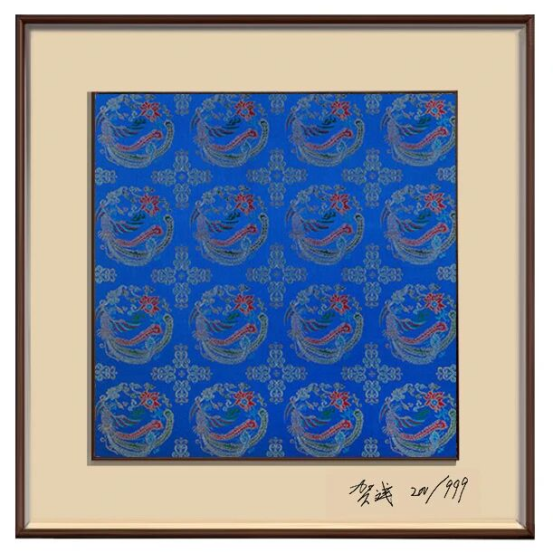 本次呈現(xiàn)的《萬花鏡錦》與《鳳穿牡丹錦》系列手工蜀錦藝術(shù)品是由蜀錦織造技藝國(guó)家級(jí)代表性傳承人賀斌及非遺傳承人團(tuán)隊(duì),在全球唯一可操作的清代道光年小花樓木織機(jī)上,以傳統(tǒng)手工蜀錦織造工藝全手工織造而成。