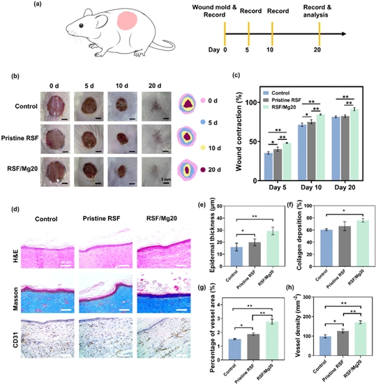 圖7. RSF/Mg20薄膜的傷口修復(fù)性能