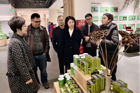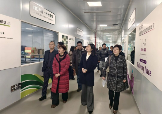 在四川尚好茶業(yè)有限公司負責(zé)人的陪同下,調(diào)研組深入桑茶生產(chǎn)一線和蠶桑資源綜合利用成果展示區(qū),實地察看桑葉分選、清洗、殺青、干燥等加工環(huán)節(jié),詳細詢問桑芽分級標(biāo)準(zhǔn)、產(chǎn)品研發(fā)的關(guān)鍵技術(shù)及創(chuàng)新路徑,并就工藝流程優(yōu)化、產(chǎn)品質(zhì)量控制等與企業(yè)人員進行了交流。調(diào)研組系統(tǒng)了解了南充在桑茶制品、桑枝利用、蠶沙開發(fā)及文旅融合等方面的探索與階段性成效。