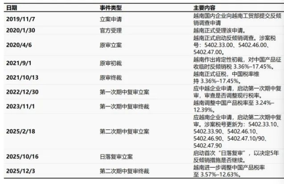 就在墨西哥對華加稅的同時,東南亞紡織大國卻呈現出相反的政策動向,為中國紡織原料出口提供了新空間。2025 年 12 月 3 日,越南工貿部發(fā)布公告,對原產于中國的聚酯長絲紗線作出第二次期中復審終裁,將反傾銷稅調整為 3.57%-12.63%。盡管這一稅率較 2023 年第一次復審略有上升,但仍遠低于 2021 年原審終裁的 3.36%-17.45%,為中國滌絲進入越南市場創(chuàng)造了更寬松的環(huán)境。