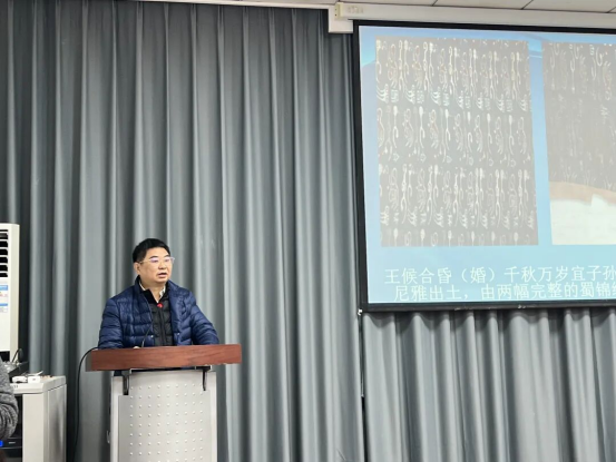 2025年12月18日,四川隆重紀(jì)念國寶“五星出東方利中國”蜀錦出土30周年專題座談會在四川省絲綢科學(xué)研究院舉行。本次座談會由四川省絲綢科學(xué)研究院主辦、四川省嫘祖蜀錦蜀繡研究開發(fā)中心、四川順成紡織品有限公司、成都同興德線業(yè)有限公司承辦,邀請了來自文博機(jī)構(gòu)、高校、行業(yè)協(xié)會、企業(yè)及地方文化單位的專家學(xué)者與業(yè)界代表,共計70余人參加。四川電視臺文旅頻道、四川文化網(wǎng)、八禾網(wǎng)、中國蜀錦文化網(wǎng)等媒體到場報道。與會代表圍繞國寶級文物“五星出東方利中國”錦護(hù)臂出土三十周年的歷史意義、學(xué)術(shù)價值以及蜀錦蜀繡在當(dāng)代的保護(hù)、傳承與創(chuàng)新發(fā)展等議題,展開了深入研討。