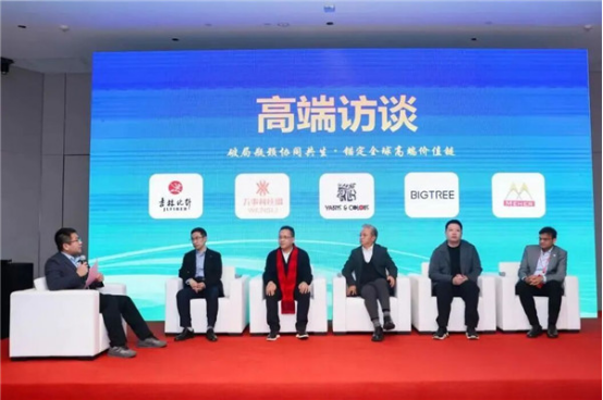 在高端訪(fǎng)談環(huán)節(jié),主持人張子昕與吉林化纖集團(tuán)副總經(jīng)理、吉林化纖股份公司總經(jīng)理金東杰,MEHER CREATIONS總經(jīng)理Mr.Sumit Agrawal,杭州萬(wàn)事利總經(jīng)理馬廷方,錦祥紡織科技(蘇州)總經(jīng)理陳志軒,浙江大樹(shù)紡織總經(jīng)理邵靈彬等,圍繞“破局瓶頸協(xié)同共生·錨定全球高端價(jià)值鏈”議題,就人造絲核心優(yōu)勢(shì)、品質(zhì)影響、綠色化、功能化、產(chǎn)業(yè)鏈協(xié)作、“十五五”發(fā)展方向等展開(kāi)探討。