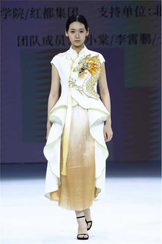 結(jié)項(xiàng)成果展演以動(dòng)態(tài)展示檢驗(yàn)教學(xué)成果、促進(jìn)學(xué)員交流,推動(dòng)旗袍文化在當(dāng)代的活態(tài)傳承與創(chuàng)新融合,讓經(jīng)典與時(shí)尚碰撞出絢麗火花。展演作品圍繞“傳統(tǒng)技藝+數(shù)字化技術(shù)”展開,通過(guò)京式旗袍的紋樣創(chuàng)新、版型優(yōu)化、數(shù)字建模等方式,展現(xiàn)了學(xué)員對(duì)旗袍文化的理解與創(chuàng)作活力。
