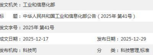2025年12月29日,工業(yè)和信息化部發(fā)布紡織行業(yè)標(biāo)準(zhǔn)46項,紡織行業(yè)計量技術(shù)規(guī)范12項。