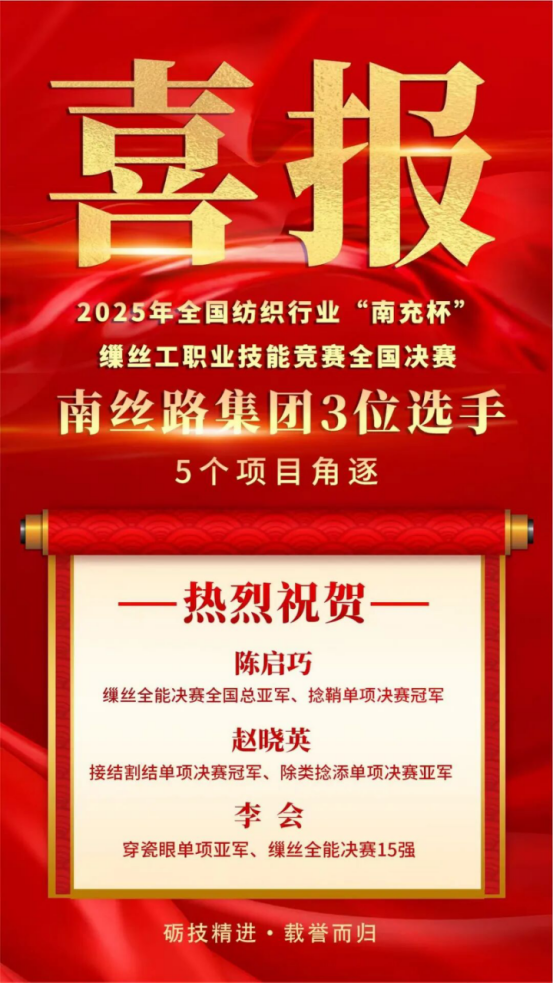 本次全國繅絲工職業(yè)技能競賽,是代表國內繅絲行業(yè)最高水平的技能擂臺。南絲路集團參賽團隊,不僅實現了個人技能的精彩綻放,更以團隊的整體優(yōu)勢,展現了系統(tǒng)化技能培養(yǎng)的豐碩成果:
