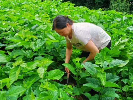 今年41歲的蔡梅,是一位從貴州遠嫁到田蓬鎮(zhèn)田房行政村麻呼小組的農(nóng)村婦女,僅有初中學(xué)歷的她,早年間為養(yǎng)家糊口,曾與丈夫常年在外務(wù)工,一年僅在春節(jié)回家一次。2018年,為照顧年邁的父母和年幼的孩子,蔡梅與丈夫毅然決定回鄉(xiāng)。當(dāng)年底,她在自家林地上試種10畝禾桑,開啟了桑蠶養(yǎng)殖創(chuàng)業(yè)之路。
