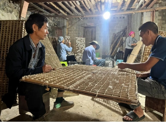通過黨建聯(lián)建平臺,兩地整合資源開展“實訓(xùn)聯(lián)學(xué)”,采取“院壩課堂+田間課堂+生產(chǎn)基地”模式,組織農(nóng)技專家、種植能手深入一線傳授技術(shù),改變過去“單打獨斗”的局面。如今,田房村及周邊村寨桑樹種植面積達2000余畝,養(yǎng)蠶戶達240余戶,蠶繭年產(chǎn)量近2萬公斤,形成了“房前屋后種桑樹、農(nóng)家庭院搞養(yǎng)殖”的特色產(chǎn)業(yè)格局,桑蠶產(chǎn)業(yè)成為名副其實的“富民產(chǎn)業(yè)”,不僅富了群眾的口袋,更暖了鄉(xiāng)親們的心田。