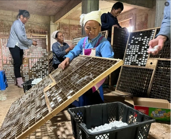 “過去蠶繭要運到縣城收購點,現(xiàn)在收購商直接上門,節(jié)省了運費還能即時結(jié)算。”蔡梅介紹道。