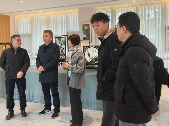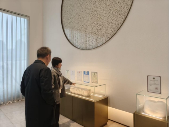 考察團(tuán)先后參觀了“千鶴絲語(yǔ)”蠶桑文化展示中心、葚紅酒莊、桑田茶社等點(diǎn)位,深入了解園區(qū)以蠶桑文化為核心,推動(dòng)“農(nóng)科文旅商”五態(tài)融合的創(chuàng)新實(shí)踐。賈艷芳向考察團(tuán)介紹了天虹絲綢在蠶桑全產(chǎn)業(yè)鏈建設(shè)、文化品牌塑造及鄉(xiāng)村振興帶動(dòng)等方面的積極探索與成果。