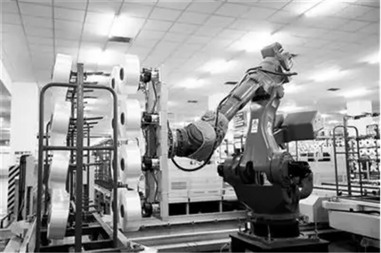 江蘇恒力化纖股份有限公司的工廠車間內,機械臂正在進行精準操作