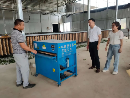 基地重點(diǎn)引進(jìn)并示范推廣高速切葉機(jī)、電動(dòng)喂蠶車、自動(dòng)上蔟機(jī)、氣動(dòng)式快速摘繭機(jī)等新型專用機(jī)械設(shè)備,推動(dòng)從桑葉采收、處理、飼喂到上蔟、采繭等主要生產(chǎn)環(huán)節(jié)的機(jī)械化作業(yè),通過提升機(jī)械化水平,不僅減輕了勞動(dòng)強(qiáng)度,也促進(jìn)了生產(chǎn)標(biāo)準(zhǔn)化和蠶繭品質(zhì)的穩(wěn)步提高。項(xiàng)目承擔(dān)單位積極探索“公司+基地+農(nóng)戶”等利益聯(lián)結(jié)機(jī)制,目前已組織開展機(jī)械化養(yǎng)蠶技術(shù)培訓(xùn)超過100人次,帶動(dòng)周邊農(nóng)戶學(xué)習(xí)使用新機(jī)具、新技術(shù),共享產(chǎn)業(yè)升級(jí)帶來的發(fā)展成果,帶動(dòng)周邊農(nóng)戶應(yīng)用新機(jī)具、新技術(shù),共享產(chǎn)業(yè)發(fā)展紅利。