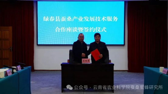 下午,耿玲德一行與綠春縣委副書記馬俊、農(nóng)業(yè)農(nóng)村和科學(xué)技術(shù)局局長李晨辰等有關(guān)領(lǐng)導(dǎo),就綠春縣蠶桑產(chǎn)業(yè)發(fā)展問題開展座談交流。會上,馬俊副書記詳細(xì)了解了桑苗氣候適應(yīng)、桑樹生長周期、病蟲害防治、蠶室建設(shè)標(biāo)準(zhǔn)、蠶臺搭建規(guī)范、種養(yǎng)關(guān)鍵技術(shù)及蠶繭回收機(jī)制等關(guān)鍵問題。耿玲德表示,蠶蜂所會充分發(fā)揮蠶??蒲袃?yōu)勢,統(tǒng)籌人才、平臺、技術(shù)、渠道等方面的資源,全程指導(dǎo)、全力支持綠春縣蠶桑產(chǎn)業(yè)發(fā)展,幫助其實(shí)現(xiàn)從“0”到“1”的突破。本著“共享共贏、風(fēng)險共擔(dān)、互惠互利”的原則,經(jīng)友好協(xié)商,雙方達(dá)成共識,綠春縣將充分依托在資金、土地、組織管理等方面優(yōu)勢,與蠶蜂所齊心協(xié)力,共同在當(dāng)?shù)靥剿靼l(fā)展蠶桑產(chǎn)業(yè),建立桑樹種植示范基地和桑蠶養(yǎng)殖示范點(diǎn),打造綠春縣鄉(xiāng)村振興助農(nóng)增收特色示范點(diǎn),推動綠春縣特色產(chǎn)業(yè)發(fā)展實(shí)現(xiàn)“十五五”良好開局,為鄉(xiāng)村振興戰(zhàn)略實(shí)施貢獻(xiàn)農(nóng)科力量。