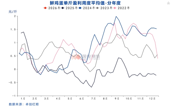 從行業(yè)利潤角度來看,2025年蛋雞養(yǎng)殖全年幾乎都在虧損,僅年初及9月蛋價(jià)反彈期間實(shí)現(xiàn)小幅盈利,其余時(shí)間均在虧損。由于養(yǎng)殖虧損的持續(xù),2025年下半年養(yǎng)殖端補(bǔ)欄情緒和上半年相比發(fā)生了逆轉(zhuǎn)。