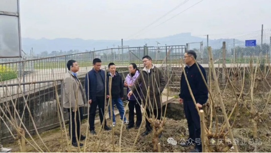 會后,全體參會人員前往三峽農科院甘寧鎮(zhèn)蠶?;兀F場觀摩學習果桑冬季管理、桑枝條還田利用等技術。