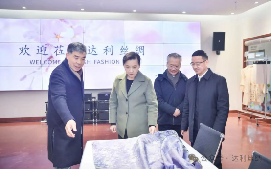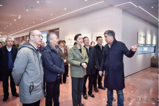 1月6日,浙江省委常委、統(tǒng)戰(zhàn)部部長王文序率隊到訪達利絲綢,以浙江省歷史經(jīng)典產(chǎn)業(yè)發(fā)展為核心開展專題調(diào)研,重點關(guān)注企業(yè)在智能化改造及AI賦能方面的創(chuàng)新實踐。為傳統(tǒng)產(chǎn)業(yè)高質(zhì)量發(fā)展精準賦能。省委統(tǒng)戰(zhàn)部副部長、省工商聯(lián)黨組書記鄭敏強,紹興市委常委、統(tǒng)戰(zhàn)部部長陳偉軍,縣委書記王奇洲等陪同調(diào)研。