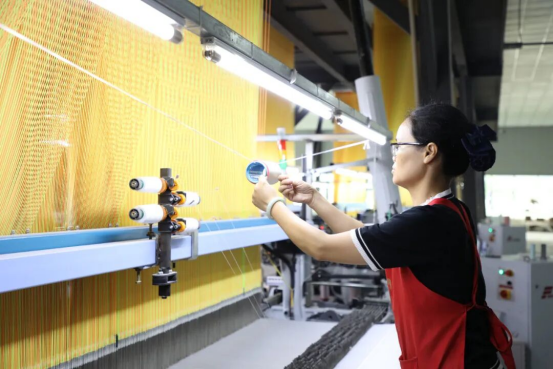 忻城工人在蠶絲提花生產(chǎn)線上工作