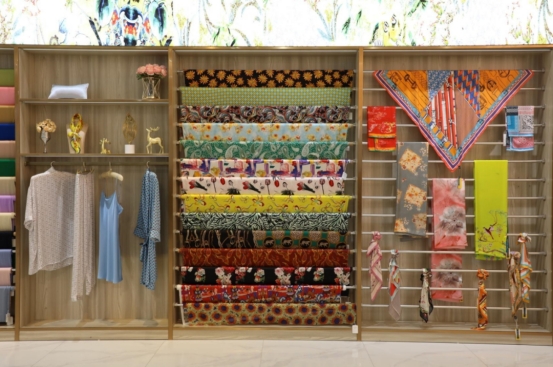 廣西忻城繭絲綢產(chǎn)業(yè)園生產(chǎn)的各式絲綢產(chǎn)品
