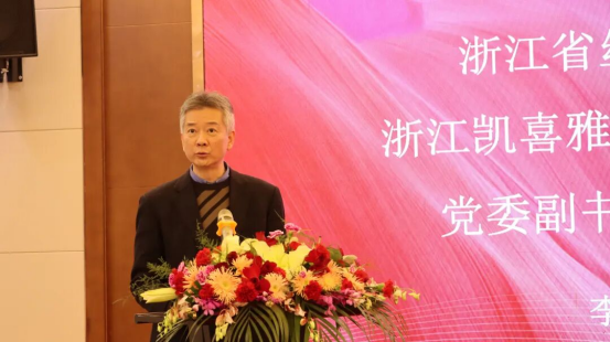 浙江省絲綢協(xié)會會長、浙江凱喜雅國際股份有限公司黨委副書記兼紀委書記李振強致辭