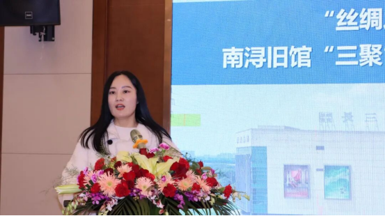 她以 “‘絲綢之源’織就長三角一體化,南潯舊館‘三聚’打造歷史經典產業(yè)創(chuàng)新傳承標桿” 為主題展開分享。作為承載千年絲綢記憶的 “產業(yè)高地”,舊館街道憑借精準施策的發(fā)展路徑,已成為長三角傳統(tǒng)產業(yè)轉型升級的典型樣本。