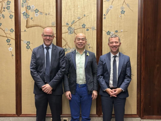 2025年10月24日至25日,愛馬仕紡織控股產(chǎn)業(yè)總監(jiān)Cédric LIO、產(chǎn)業(yè)項(xiàng)目經(jīng)理Hubert PRUNAYRE來訪聯(lián)盟秘書處并考察中國絲綢產(chǎn)業(yè)。座談會(huì)上,張國強(qiáng)主席對(duì)Cédric LIO一行來訪表示歡迎,并介紹了國際絲綢聯(lián)盟的發(fā)展近況,分享了凱喜雅集團(tuán)的發(fā)展概況,圍繞絲綢產(chǎn)業(yè)鏈智能化轉(zhuǎn)型升級(jí)、高品質(zhì)生絲電子檢測(cè)與質(zhì)量標(biāo)準(zhǔn)等行業(yè)關(guān)注的焦點(diǎn)議題交換了意見。在聯(lián)盟秘書處陪同下,Cédric LIO一行考察了主席單位凱喜雅集團(tuán)旗下浙江絲綢科技有限公司臨安織造分公司,杭州華絲夏莎紡織科技有限公司以及集團(tuán)總部的國家級(jí)工業(yè)設(shè)計(jì)中心、絲綢終端產(chǎn)品展廳,實(shí)地參觀了絲綢加工產(chǎn)業(yè)鏈環(huán)節(jié)的生產(chǎn)情況,深入了解可機(jī)洗真絲、肌理皺真絲、挺括真絲等創(chuàng)新技術(shù)研發(fā)的最新成果和應(yīng)用;考察了宏華數(shù)碼富陽工廠,參觀了數(shù)碼印花設(shè)備裝配車間、精準(zhǔn)定位和雙面數(shù)碼印花設(shè)備應(yīng)用示范,就高滲透數(shù)碼印花設(shè)備、數(shù)字微噴染色設(shè)備,以及高滲透印花仿染色技術(shù)、無鹽低堿少水染色技術(shù)等前沿創(chuàng)新成果進(jìn)行了深入交流。