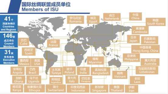 2025年,秘書處持續(xù)擴(kuò)展國際資源,吸收新成員,共有來自中國、古巴、阿根廷、巴拉圭、巴西、墨西哥、烏茲別克斯坦、印度等8個(gè)國家的13家企業(yè)和組織申請(qǐng)加入,至此,聯(lián)盟成員已拓展至41個(gè)國家和地區(qū)146家成員。此外,自2024年聯(lián)盟正式被UIA認(rèn)定為B類——全球性成員組織以來,各國政府相關(guān)部門對(duì)聯(lián)盟的關(guān)注度也逐步提高,交流逐步加深,進(jìn)一步提升了聯(lián)盟在主要絲綢生產(chǎn)國和消費(fèi)國的國際影響力。