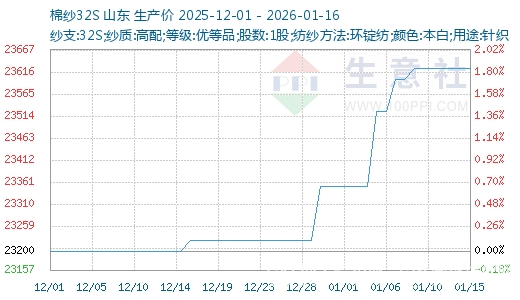 據(jù)生意社商品行情分析系統(tǒng)顯示:本周上游棉花下跌,紡企出貨有所好轉(zhuǎn),棉紗價(jià)格較為穩(wěn)定。截至1月16日,國(guó)內(nèi)山東地區(qū)21S純棉環(huán)錠紡現(xiàn)貨價(jià)格參考22250元/噸左右,與上周持平;32S純棉環(huán)錠紡現(xiàn)貨價(jià)格考在23600元/噸左右,與上周持平。
