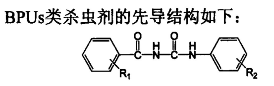 苯甲酰脲類殺蟲劑(BPUs)是以苯甲酰脲類化合物為基礎的殺蟲劑,通過對靶標害蟲體內幾丁質進行抑制,實現(xiàn)對靶標害蟲進行殺滅。苯甲酰脲類殺蟲劑對昆蟲的接觸殺作用很小,主要是通過胃毒作用來實現(xiàn)對害蟲的殺滅。殺蟲作用緩慢,在昆蟲蛻皮過程中發(fā)揮作用,一般用藥后至少3天害蟲才會死亡。對鱗翅目、鞘翅目以及同翅日昆蟲有較好的殺滅效果,同時對沒有幾丁質的生物影響較小。