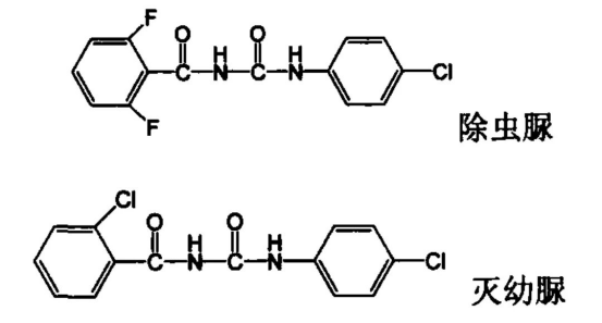 除蟲脲、毒蟲脲、滅幼脲、殺鈴脲、氟苯脲、氟蟲脲、氟啶脲、氟鈴脲、氟螨脲、虱螨脲、氟環(huán)脲、雙二氟蟲脲、雙三氟蟲脲和多氟脲等。