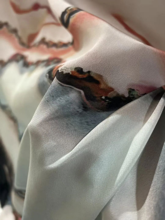 新民絲綢擁有92臺(tái)意大利進(jìn)口劍桿織機(jī),通過(guò)現(xiàn)代數(shù)字織造技術(shù)重構(gòu)傳統(tǒng)送經(jīng)工藝,創(chuàng)新組織工藝與數(shù)碼化錯(cuò)位風(fēng)格疊加的表現(xiàn)手法,打造出極具視覺(jué)沖擊力的產(chǎn)品。2024年,其功能性真絲產(chǎn)品躋身國(guó)內(nèi)細(xì)分市場(chǎng)前五,自主品牌“引心力”“蠶花牌”憑借技術(shù)攻關(guān)與高附加值,成為盛澤絲綢數(shù)字化加工制織的示范標(biāo)桿。