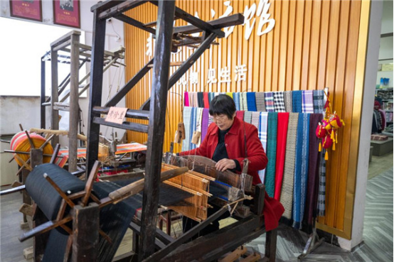 這幾天,陶文成格外高興,他籌備許久的1600平方米紅安大布產(chǎn)業(yè)化示范和研學基地正式開業(yè)了,新場地有織機40多臺,吸納長勝街周邊百余位留守婦女加入。