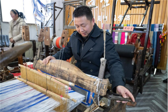 陶文成心里清楚,非遺傳承不能只靠情懷。學會母親的紡織絕活后,他運用大學所學的機械知識,對老織機進行了一些“不傷筋骨”的改良,提高了生產(chǎn)效率。他還經(jīng)常走出紅安,參加各類展會。母校組織的脫產(chǎn)培訓,他也積極報名。