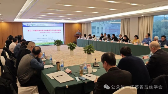 為深入學習貫徹黨的二十屆四中全會與中央經(jīng)濟工作會議精神,切實把思想和行動統(tǒng)一到黨中央決策部署上來,充分發(fā)揮社會組織橋梁紐帶作用,賦能全省蠶絲產(chǎn)業(yè)高質(zhì)量發(fā)展,近日,在召開學會十三屆五次理事會期間,專題開展黨建學習,特邀學會常務(wù)理事、蘇州大學蠶桑研究所所長李兵教授作專題分享談體會。黨建學習由學會理事長周謙主持。學會理事、會員代表及行業(yè)相關(guān)單位負責人等40余人參會。