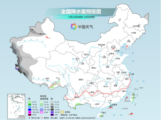 今天,我國雨雪將進一步減少,此次大范圍雨雪過程基本結束,未來三天我國大部地區(qū)進入降水間歇期,以晴或多云天氣為主。但與此同時,新疆西部、西藏西部等地將現(xiàn)降雪,局地可能出現(xiàn)大暴雪。