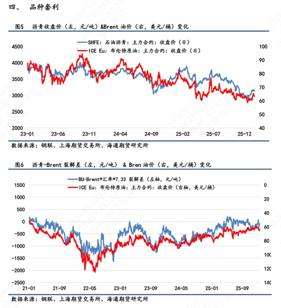 【3】短期展望:目前瀝青絕對(duì)價(jià)格再次出現(xiàn)馬杜羅被捕事件之后出現(xiàn)的二次跳空上漲,盡管跳漲幅度不及前次,但依舊表現(xiàn)出偏強(qiáng)性能。其中也是受油價(jià)波動(dòng)明顯,近期寒潮天氣影響帶動(dòng)天然氣暴漲,油價(jià)也跟隨短線走強(qiáng),同時(shí)美伊地緣仍處于反復(fù)摩擦階段,市場(chǎng)對(duì)此因素關(guān)注度也較高。因而成本端的上行也驅(qū)動(dòng)瀝青上漲動(dòng)能。只不過需要注意的是,比起SC日間收盤(1.20%)和燃料油(3495, -7.00, -0.20%)日間收盤(1.89%)的上漲幅度,瀝青的漲幅要更為積極,這也是在整體利好情況下,盤面也是計(jì)價(jià)放大了自身未來看漲預(yù)期的波動(dòng)。