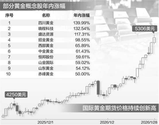 銀行強化黃金業(yè)務(wù)風控,源于貴金屬價格的持續(xù)走高。1月28日,國際國內(nèi)金價同步強勢攀升:美國紐約商品交易所黃金期貨價格盤中突破每盎司5300美元,創(chuàng)下歷史新高;國內(nèi)黃金價格逼近1200元/克,日內(nèi)漲幅達3.6%,刷新年內(nèi)最大單日漲幅。