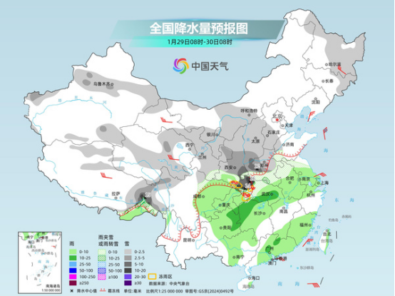 冷空氣東移南下的同時,低空偏南暖濕氣流北上,兩者相遇將給中東部帶來較大范圍雨雪天氣過程。