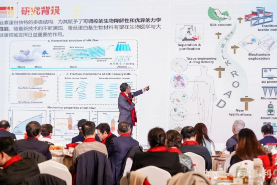 蘇州大學(xué)紡織與服裝學(xué)院院長、現(xiàn)代絲綢國家工程實驗室主任張克勤作《當(dāng)古老絲綢邂逅未來科技:3D 打印構(gòu)架起生命之橋》主題分享。