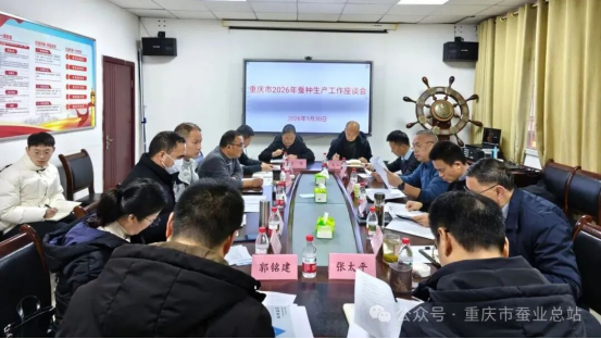 為深入貫徹落實(shí)國家及我市關(guān)于蠶種生產(chǎn)管理的各項(xiàng)要求,系統(tǒng)總結(jié)2025年全市蠶種生產(chǎn)工作,科學(xué)分析當(dāng)前行業(yè)發(fā)展形勢(shì),全面部署2026年重點(diǎn)任務(wù),1月30日,重慶市蠶業(yè)總站在總站三樓會(huì)議室組織召開了2026年全市蠶種生產(chǎn)工作座談會(huì)。市蠶業(yè)總站主要領(lǐng)導(dǎo)、相關(guān)科室負(fù)責(zé)同志,以及全市桑蠶原種、一代雜交種生產(chǎn)與冷藏單位相關(guān)負(fù)責(zé)人等共計(jì)16人參加會(huì)議。市商務(wù)委一級(jí)調(diào)研員王慶、三級(jí)調(diào)研員袁徐宏出席會(huì)議。