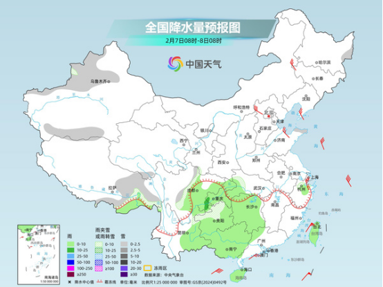 明天,此次雨雪過(guò)程將減弱、收尾,降水主要集中在西南地區(qū)東部到江南西部一帶。預(yù)計(jì)新疆沿天山地區(qū)和南疆盆地、西藏東南部、青海南部、川西高原、貴州北部等地部分地區(qū)有小雪或雨夾雪。西藏東南部、江南西部、西南地區(qū)東部和南部、華南大部、臺(tái)灣島等地部分地區(qū)有小雨,其中,四川盆地東南部等地部分地區(qū)有中雨。