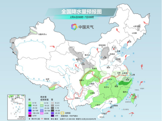 今明天(2月6日至7日)寒潮將繼續(xù)南下影響我國(guó),江南東部部分地區(qū)降溫幅度將超過(guò)12℃。同時(shí),大范圍雨雪天氣還將持續(xù),隨著氣溫下降,今天安徽、江蘇、上海、浙江等地將出現(xiàn)雨雪轉(zhuǎn)換,安徽南部、浙江北部等地部分地區(qū)有大雪,局地暴雪。