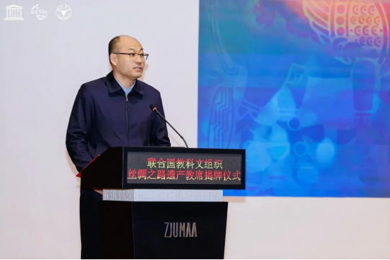 活動(dòng)現(xiàn)場(chǎng),Journal of Silk Road Heritage(JSRH)英文學(xué)術(shù)刊物發(fā)布儀式及“聯(lián)合國(guó)教科文組織文化遺產(chǎn)教席聯(lián)盟”成立儀式同步舉行。