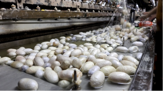 2024年秋蠶季,寬甸滿族自治縣板栗樹養(yǎng)蠶面積近5萬畝,涉及1400多戶,產(chǎn)繭近350噸,產(chǎn)值2400多萬元?!巴馐小⑼馐《紒韺W(xué)習(xí)經(jīng)驗(yàn)?!睂m艷虎介紹,傳統(tǒng)產(chǎn)業(yè)的可持續(xù)發(fā)展,離不開穩(wěn)固的原料基地和穩(wěn)定的市場(chǎng)渠道。寬甸依托57.5萬畝柞園,保障優(yōu)質(zhì)繭源供應(yīng);通過繅絲企業(yè)對(duì)接國(guó)際市場(chǎng),確保產(chǎn)品銷路;推動(dòng)柞蠶產(chǎn)品由單一的紡織工業(yè)原料、餐桌菜肴向服裝、醫(yī)藥、保健、食品、化工等領(lǐng)域延伸,形成柞蠶全產(chǎn)業(yè)鏈發(fā)展布局,降低單一產(chǎn)品風(fēng)險(xiǎn)。