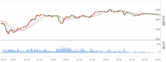 今日(周五)生絲盤面在外圍市場劇烈波動(dòng)下,各遠(yuǎn)近合約又繼續(xù)小幅收跌。260925生絲合約有所成交。本周生絲指數(shù)收出帶上影的小陽線,呈維穩(wěn)波動(dòng)態(tài)勢。