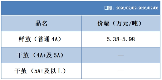 本周高品位生絲協(xié)作單位成交價(jià)格區(qū)間