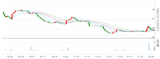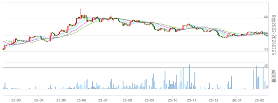 今日(2026年02月12日,周四)中國繭絲綢交易市場生絲電子指數(shù)上漲0.02%報收于4588.94點。B絲2022D(商檢4A級生絲):260325合約上漲0.03萬元報收于45.93萬元;260925合約上漲0.03萬元報收于45.87萬元;270325合約報平,收于45.84萬元。