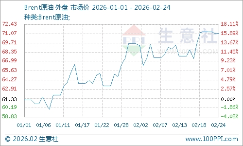 春節(jié)假期期間原油價格表現(xiàn)強勢,對成本端形成利好支撐。市場依然擔(dān)憂美伊關(guān)系的不確定性,疊加俄烏和談暫無實質(zhì)性進展,春節(jié)期間國際油價上漲。2月19日,WTI、布倫特原油期貨分別收漲4.59%、4.35%;2月20日,兩油盤中分別觸及67.03、71.66美元/桶,創(chuàng)下近半年新高,兩日累計漲幅超5%。