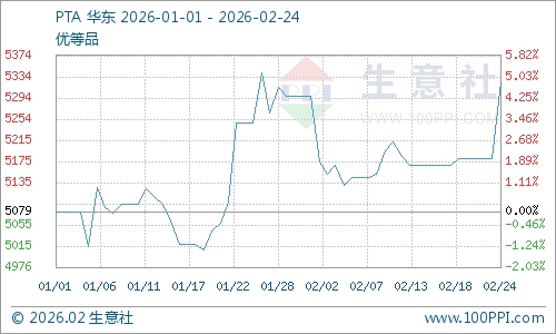 PTA市場跟漲,2月24日華東地區(qū)PTA現(xiàn)貨價格在5324元/噸,較上一交易日上漲2.76%。假期期間,逸盛新材料360萬噸PTA裝置2月24日因故臨停,目前正在恢復(fù)中,行業(yè)產(chǎn)能開工率在70%附近,暫緩了PTA累庫存的速度。2026年,國內(nèi)暫無新建PTA裝置計劃投產(chǎn),行業(yè)產(chǎn)能擴張進入“空窗期”。與此同時,下游聚酯的擴張步伐仍在繼續(xù),預(yù)計將呈現(xiàn)供需趨緊的態(tài)勢。