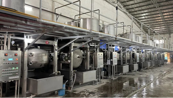 廣西恒業(yè)絲綢集團有限公司是一家集鮮繭收烘銷售、白廠絲、坯綢及蠶絲被生產(chǎn)銷售為一體的繭絲綢綜合型國家級龍頭企業(yè)。旗下?lián)碛?家控股子公司,有自動繅絲機142組,年產(chǎn)白廠絲3500噸,產(chǎn)品暢銷國內(nèi)外,并在國際市場樹立起中國絲綢的優(yōu)質(zhì)口碑。為了提質(zhì)降耗、增加企業(yè)效益,恒業(yè)集團在2025年初進行了2臺減壓自動煮繭機技改,通過不同地區(qū)、繭季的原料在不同車間實繅生產(chǎn)對比測試,提質(zhì)增效顯著,全面驗證了新技術(shù)及設(shè)備卓越性能。為此集團做出了全面應(yīng)用減壓自動煮繭機的決策,裝機總數(shù)約40臺,目前14臺已投產(chǎn),預(yù)計2026年底全部安裝運行。